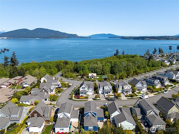 Cape Cod-style charm in desirable San Juan Passage. Enjoy peaceful water, wildlife, and island views from the covered front porch and upper balcony. Inside, rich flooring and detailed trim flow through the open-concept main level—perfect for hosting. The primary bedroom with ensuite bath sits conveniently on the main floor. Upstairs front room features French doors to the balcony, an additional bedroom and full bath. Step outside to a beautifully landscaped backyard with a private patio—complete with space for dining, lounging, and a bbq —ideal for relaxing or entertaining under the stars. Community perks include a pickleball court, gazebo, and direct access to the Guemes Trail and beach—perfect for embracing island living.