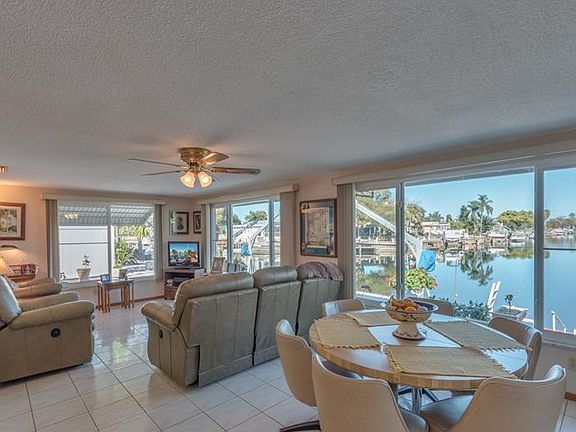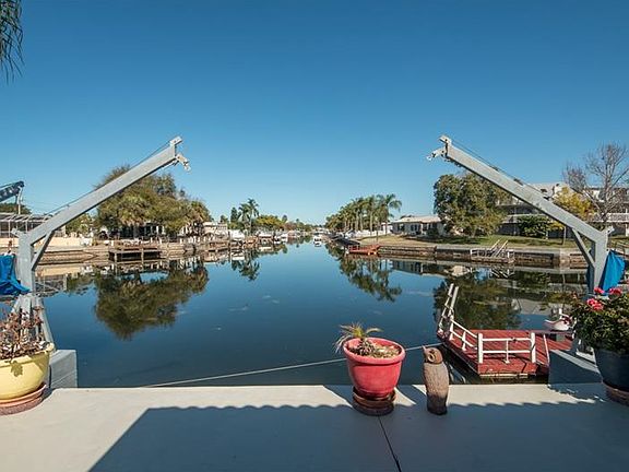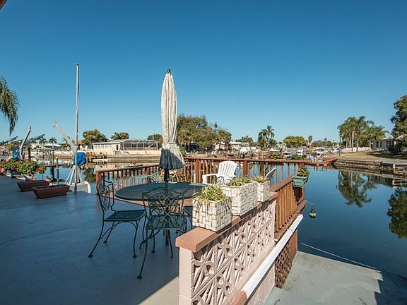 Waterfront living with quick access to the Gulf Of Mexico at an affordable price. This beautifully maintained 2 bedroom, 2 bath home has 66 feet of waterfront with plenty of space for your water toys, featuring a floating dock, davits, and beautiful deck extending out over the water. The kitchen is open to the family room which overlooks the sparkling waters of the South Channel. You will love the wide open water views through the wall of windows (hurricane rated) and the quick and immediate deep water Gulf access. The spacious enclosed porch is perfect for relaxing and enjoying the waterfront views. Lots of ceramic tile throughout, hurricane shutters on the porch, a roomy garage with work bench and built ins plus lots of closet space for storage inside. The low maintenance stone yard means more time to spend on the water! Call to schedule your appointment to view this waterfront gem.