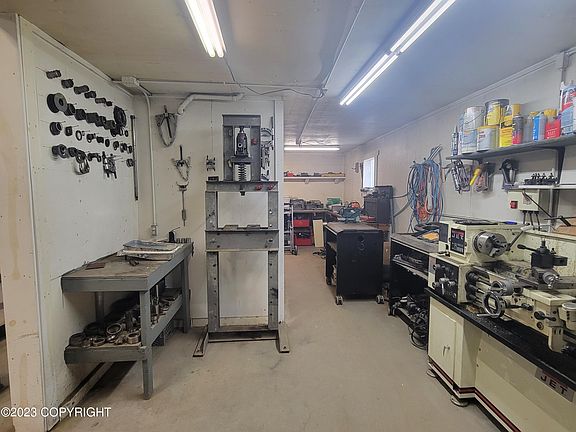 SHOP --- Welders, mechanics, boat builders or anyone looking for a place to store your boats, RV and Alaskan toys.  The shop has 2616 sq ft with an office, 1/2 bath and 3 garage doors.  The house is a three bedroom, 3 bath home with large entry way and lots of storage.  Car lift in the shop can be purchased or the sellers will take it with them.