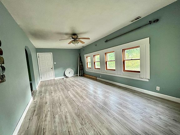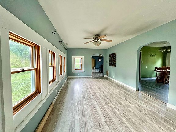 One floor plan with 2 bedrooms and 1 bath with approximately 1,398 sq feet. No basement. Large family room with fireplace. Home has several updates including new Pella windows and new vinyl flooring. You will love the spacious eat in kitchen and additional space that could be used for living room or dining room. This home includes additional +/- 2 acres that's behind the home. Enjoy extra land or use to build your dream home. This won't last call today to schedule an appointment. Being Sold As Is.