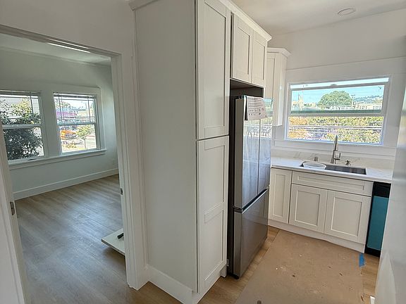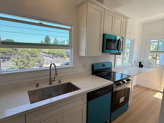 Bright and sunny corner upper unit works perfectly as a two bedroom for roommates or use the second room as an office if you work from home. All new finishes- feel like a fancy condominium inside of a charming four Plex built in the 1920s. Apartment upgrades include: Soft close kitchen cabinets Quartz countertops All new stainless steel appliances Electric heaters, including a fireplace in the living room In unit laundry machine included Deep soaking bathtub with quartz tub surround for easy cleaning I must see just walking distance to BART and bus lines Call or text for video walkthrough of the apartment and if you like what you see let's meet for an in person tour. Owner pays water and garbage Tenants pay gas, electricity, and Internet cable services No smoking Parking is additional hundred dollars per month