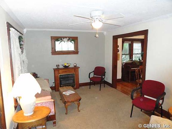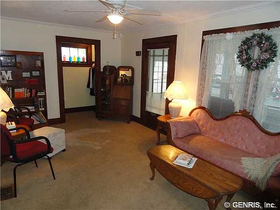 Pride of ownership through out. Within the last two years are: tear off roof, forced air furnace, blacktop driveway. Traditional colonial style offers an enclosed porch, 18' living room with natural wood trim open to the formal dining room with a bay window. Gas fireplace is thermostatically controlled. Updated kitchen cabinets, laminate flooring and a walk-in pantry accentuate the kitchen. The master bedroom is on the third floor with two closets and plenty of storage areas. Many vinyl replacement windows. Upgraded wall to wall carpeting in the living room, stairway and bedrooms.