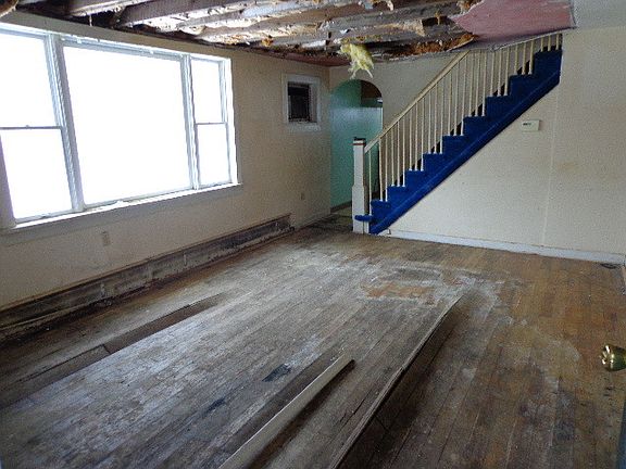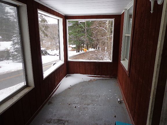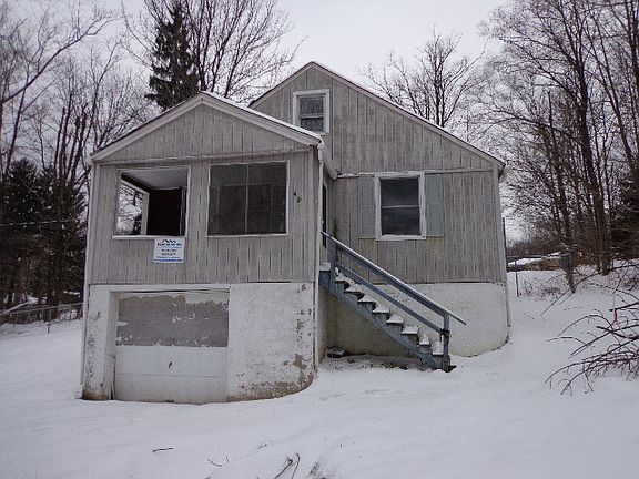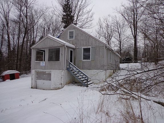 Exterior Features:Cabin style home a short distance from the lake. Exterior in overall fair condition other than the roof. Has enclosed front porch with large windows that need replaced. Front stairs need attention. Has rear screened in porch as well.Interior Features:Interior is in poor condition. Has water damage due to leaking roof. Floors are warped and will need replaced, as will some insulation. Kitchen is large, outdated, and without appliances. Bathroom needs work and updated. The second floor is a large single room with carpet in poor shape. The home has plumbing and electrical still intact in basement, but needs work. Basement is large and has garage door access.