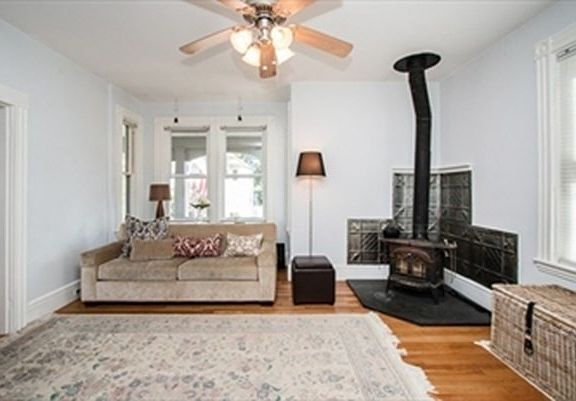 Modern single family home with 2 bedrooms and 1-1/2 baths. Stylish & functional kitchen, remodeled in 2018 with recessed lighting and rustic shiplap accent wall. Walk out to your serene, private backyard oasis - fully fenced, oversized deck, shed - peace and quiet! The main floor also features a charming half bath, dining room and and inviting living room with a wood burning stove. The second level has two large bedrooms with plentiful closet space and storage and a full bath with a skylight. This home has hardwood floors, updated windows and a younger state-of-the-art gas heating system. Includes 3 tandem parking spaces, awesome farmer's porch and laundry. A+ location equidistant to Roslindale Village and Belgrade Ave commuter rail stops (approx 1 mile) and all of the eclectic restaurants and shops of Roslindale Village and West Roxbury's Centre St. Close proximity to the 475 acre Stony Brook Reservation for biking and hiking, Bellevue Hill Park and the George Wright Golf Course.
