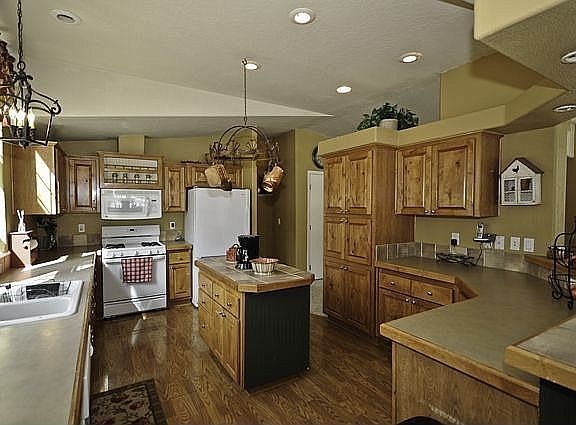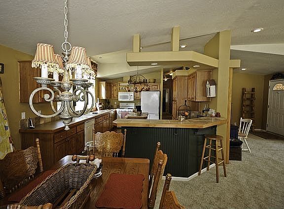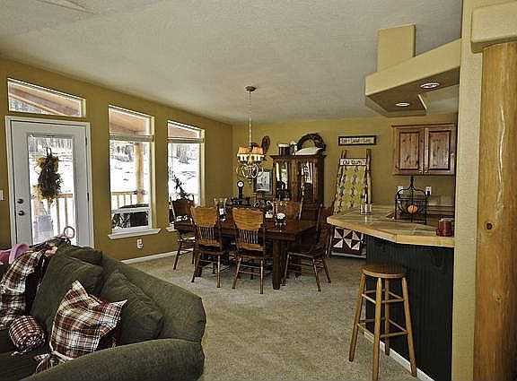 Beautiful rustic modern mountain retreat! This beautiful home sits on 2 acres of pristine treed lot in Blue Mountain Estates. Drive up to your mountain escape and be greeted by the log-sided home with 2 large covered wood decks. Walk in and be awed by the open layout and huge windows that pour an abundance of beautiful natural light into the space. The house has rustic vinyl plank flooring throughout. The living room and dining room have vaulted ceilings, picturesque windows that feature beautiful views of the great outdoors, and a wood-burning stove surrounded by stone. The dining room walks out onto one of the covered wood decks. The large spacious kitchen has stainless steel appliances, high ceilings, recessed lighting, tile countertops, a large counter bar for extra seating, double sink, huge picture windows, and lots of cabinets! Bedroom 2 has custom shelving in the closet, large windows, and a ceiling fan. Bedroom 3 (currently used as an office) also has large windows, ceiling fan, spacious closet, and includes cabinets. The bright and spacious master bedroom has large corner windows, ceiling fan, and walk-in closet. The adjoining 5-piece master bathroom features dual sink vanity, wood cabinets, a separate water closet with new barn door, stand-alone shower, soaker tub, large windows, and vaulted ceiling. Hallway full bathroom has vinyl flooring and laminate countertop. The home has been freshly stained throughout the exterior and has all new interior doors and trim.