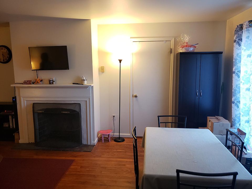 Quiet and bright second floor apartment. There is a large living room with working fireplace. Off of the living room is a private patio overlooking the Lehigh river. The kitchen has all appliances. Both bedrooms are carpeted. Bathroom has a washer/dryer. Please be aware that there is an active train track that runs along the river. Background and credit check required. Owner pays water, garbage, and sewer. One year lease, one month security deposit.