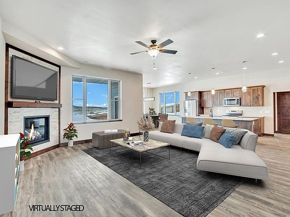 This new construction home is in one of Spearfish's newest developments. You'll enjoy one-level living in this 4 bedrooms, 2 bath home. Enjoy the open floor design in the living room & kitchen with 10' ceilings! The living room has a corner gas-log fireplace for those chilly nights. The kitchen is open to the living room with a breakfast bar. The countertops are granite, Alder spice cabinets with under cabinet lighting, soft close drawer, pull out shelves and a walk-in pantry. Stove is plumbed for gas. The laundry is off the garage and has a laundry sink. The primary suite has a private bath with double sinks, walk-in tile shower and large walk-in closet. The other 2 bedrooms are on the opposite side of the house for added privacy. The 4th bedroom can be an office, den or small bedroom. The dining area has an Anderson door leading to the covered patio with a nice view. The 3-car garage is heated, fully insulated, sheet rocked and includes 2 floor drains. Buyer is responsible for verifying all information on this MLS document. Call or Text Listing Agent - Suzanne Cramer - The Real Estate Center of Spearfish - 645-2391 for more information.