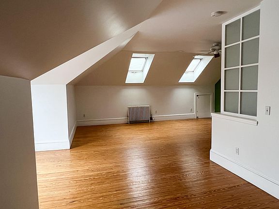2 bedroom with home office/bonus room! This is a two-floor apartment with a huge living space, large bedrooms, full bath plus half bath with in-unit washer/dryer. Hardwood floors, granite counters, dishwasher. Heat + HW and parking spaces for up to two vehicles all included in rent. The only room not pictured is the full bath, as it's currently getting a fresh coat of white paint. That has a bathtub with tiled shower and glass doors. Located in a brick 4-unit building, this is referred to as the "owner's unit" and is truly a unique space occupying half the second floor, and the entire third floor of the building. Skylights with blinds, new hardwood floors, and a fresh coat of paint throughout. Again, heat, hot/cold water and parking all included with in-unit laundry. Tenant just pays electric. No smoking. No pets. Application required. Owner pays heat and hot water. Tenant responsible for electric. Parking included for one or two vehicles. No smoking. No pets.