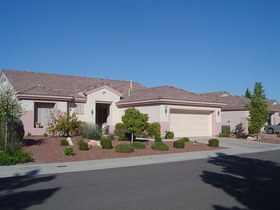 This gorgeous home has 2 bedrooms which includes a large master bedroom with a large walk in closet that is double tiered for hanging clothes along with drawers and shelves, all in the closet. The den comes complete with a built in computer desk. There are ceiling fans in every room as well as on the back patio. The front door has a security door for privacy and safety. Mostly porcelain tiled floors throughout the house except for carpet in the bedrooms and the den and formal living area has wood laminate flooring. The house has an attached 2 car garage with a work bench area as well as cabinets on both sides for storage, there is also a sink in the garage. The kitchen has a breakfast bar. All the windows are covered with beautiful shutters. The landscape is all desert for minimal care and water. This also includes with a Membership to the Desert Willow Club house and use of it's facilities. Any questions please call Doug at (This is an age restricted community (55+). Pets are welcome with a deposit. will co-operate with realtors