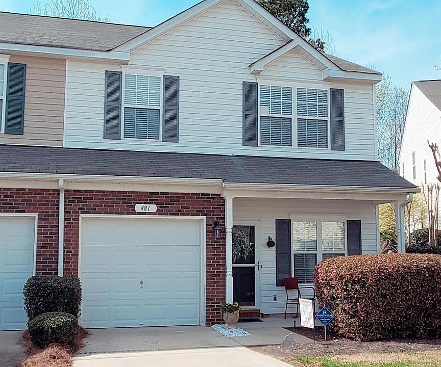 END UNIT W/ATTACHED GARAGE & PRIVATE WOODED VIEW! This beautiful ready-to-move-in townhome is in the desirable Fort Mill neighborhood of Cascades at River Crossing! MUST SEE property features beautifully maintained 2 BDRM, 2.5 bath, one car Garage. Downstairs has tile & beige carpet flooring w/gas Fireplace! HUGE family room w/dining area open to kitchen carrying all appliances that convey w/home including refrigerator. Stairs w/open baluster railings lead to 2nd story open loft. Oversized master bdrm features enclosed den/office space w/double doors! Check out the MASSIVE walk-in closet & Large window w/garden tub in master bathroom. Second bdrm is flooded w/natural light & next to full hall bath w/garden tub. Upstairs, spacious laundry room for convenience, includes a Washer/Dryer! Welcoming neighborhood includes JB creek, community pool & gorgeous flowering trees. Water/Garbage Services included in HOA. Minutes from I-77, Kingsley, Baxter, Anne Springs Greenway & Downtown Fort Mill