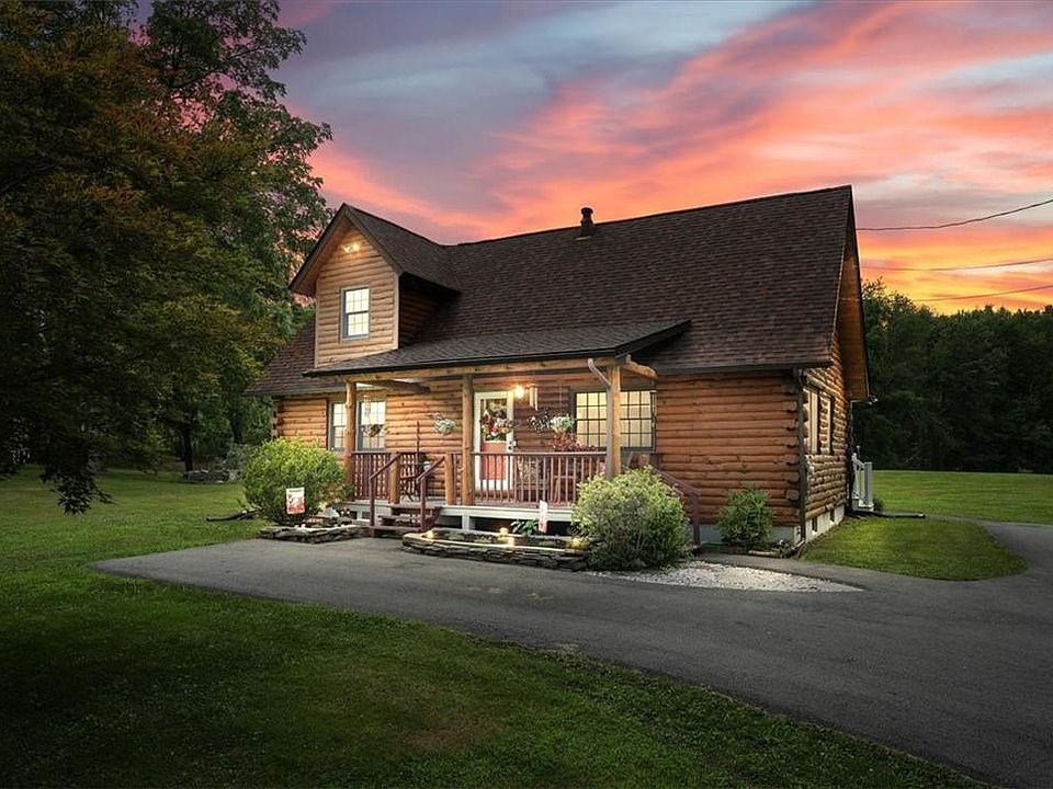 FIRST TIME ON THE MARKET * STUNNING custom-built Lok-N-Logs Log home, renowned for its superior craftsmanship, built with pressure-treated, kiln-dried logs. An inviting open floorplan, blending rustic aesthetics with contemporary comfort, adorned with gleaming hardwood floors throughout, and high cathedral ceilings. Retreat to the loft primary suite, a sanctuary of relaxation with a full bath. Two additional bedrooms and a second full bath, on the main level, provide plenty of space for family or guests. Step outside onto the beautiful Trex deck (2023), with maintenance-free vinyl railings, and enjoy your morning coffee and star gaze, while overlooking the serene 7.4 acres of property. The roof, replaced just 5 years ago, ensures peace of mind for years to come. A spacious basement with a handy workbench and recreational area awaits your personal touch and provides great storage. Whether you seek a weekend getaway or a year-round haven, this home will not disappoint. A must see! Additional Information: HeatingFuel:Oil Above Ground,