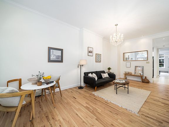 Occupying the parlor level of an imposing brownstone in perhaps the most convenient and sought-after Downtown Jersey City location, this expansive, light-filled and move-in ready residence features soaring 12ft high ceilings, a spacious living and dining room adorned with an arched window, Two tranquil Bedrooms and its own entrance directly atop an iconic front stoop. The impeccably renovated and immaculately maintained home is outfitted with beautiful oak floors throughout and exposed brick walls. The entire interior feels serene, bright and crisp. The chef’s kitchen boasts custom modern white cabinetry, quartz countertops, stainless steel appliances and marble tile floors. Both bedrooms featuring large closets are full of natural light and generous in proportions. Additionally, there is free laundry and a storage space dedicated to the unit in the building. This stunning condominium stands across the street from Jersey City Public Library and is moments to everything that makes Jersey City a great place to live including Van Vorst Park, Liberty State Park, Grove Street PATH, Ferry Station, Light Rail, City Hall, Liberty Science Center, independently owned shops, renowned restaurants, schools, and entertainment.