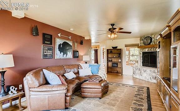 Lovely log sided home perfectly located to take full advantage of a picturesque Pikes Peak view overlooking a portion of the Maytag Ranch where deer and elk are known to roam. Main level living is featured in this move-in-ready 3 bedroom ~ 3 bath home in the Sherwood Forest Estates subdivision just west of Divide. The Master Suite offers a walk-in closet and adjoining bath. The exterior of the home has new stain and painted trim and a new refrigerator was just installed in the kitchen. The large corner lot offers privacy.