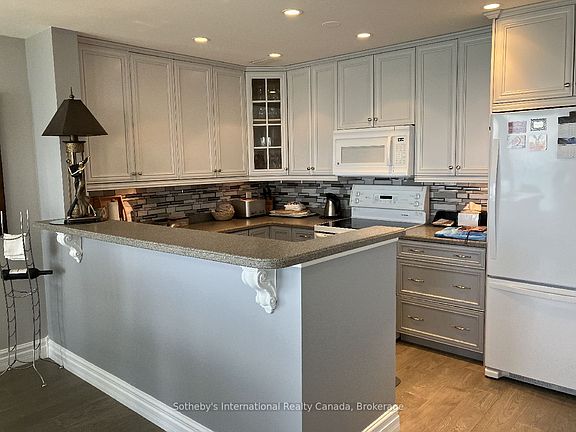 Enjoy your Winter season in comfort and luxury this year. Welcome to 481 Mariners Way in the sought after waterfront development of Lighthouse Point. This third floor 3 bed/2 bath unit, with over 1700 sq. feet of spacious and bright accommodations and tasteful decor, boasts new engineered hardwood flooring throughout, new dishwasher and freshly painted....and then there is the view! Unobstructed panoramic views of Georgian Bay to soothe your soul! Lots of natural light with this corner unit boasting spacious Great Room w/gas fireplace, dining area and fully-equipped kitchen. Primary bedroom w/king bed; 4 pc. ensuite, and breathtaking views to wake up to! Guest bedroom with 2 twin beds and view of the Bay; additional third bedroom with 2 twin beds. Family bathroom, laundry room & powder room complete this unit. Use of garage is also included. Rental rate is per month and is available for a full 4 mth period. Utilities/services are in addition to rental rate. No pets preferred, but a small non-shedding dog will be considered. NO smoking or vaping as per condo rules. Tenant has access to the rec. centre (which is just steps away!) : including indoor pool with saunas and hot tubs, games room, gym, party room. Elevator also in this building and Tenant has access to the exterior ski storage locker. 50% of rental rate is due upon signed lease agreement, with balance of rent plus utility/damage deposit of $4,000 (dependant upon length of lease) due 3 weeks prior to occupancy date. Proof of Tenant liability insurance is required before occupancy, as well as proof of primary residence. There is no BBQ at this unit.