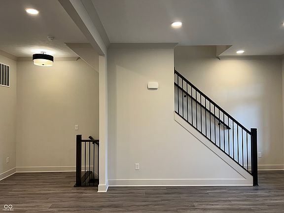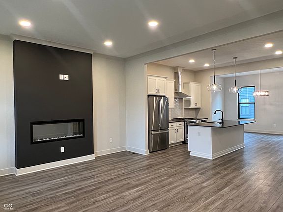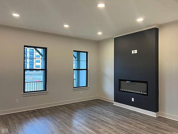 Enjoy the lock-and-leave lifestyle in the heart of downtown Carmel with this luxurious, move-in ready END UNIT townhome built by Old Town Design Group. The versatile entry-level bedroom with private WIC & bath is available for use as a private retreat or a functional home office. Upstairs you'll find an open-concept floor plan, with great room, dining, and kitchen, plus a 22x8 covered outdoor living area off of the great room. Prepare culinary delights in a well-equipped kitchen featuring quartz countertops, painted cabinetry, and stainless steel appliances, including a microwave drawer and a gas convection oven with built-in air fryer. The third floor boasts the conveniently located laundry room and 2 bedrooms, including the primary suite with floor-to-ceiling tiled shower and double vanities. Other amenities include: raised ceilings on all levels, pre-wiring for speakers in great room, large covered front porch, additional media outlets, custom shelving in all closets and pantries, and an electric fireplace with painted accent wall in the great room. Relax by the community pool, stay active in the fitness center, or pamper your furry friend at the dog wash station -- all located within North End and available to residents. Also within the North End community, you'll find Indie Coffee Roasters, Ash & Elm Cider's Carmel Taproom, Fields Market Garden & Le Petit Gateau bakery, plus a farm-to-table restaurant (coming soon). Walking paths connecting to the Monon Trail allow for easy access to Downtown Carmel.
