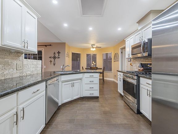 Welcome to Your Dream Home in Porterville's Highly Sought-After NW Neighborhood! This charming 3-bedroom, 2-bathroom split-floor plan gem with a versatile Den is nestled on a serene cul-de-sac, offering both tranquility and convenience. From the moment you arrive, you'll be captivated by the meticulously landscaped front yard that sets the stage for the pride of ownership evident throughout. Step inside to discover the warmth and elegance of wood plank tile flooring that flows seamlessly throughout the living spaces, complemented by cozy carpet in the bedrooms. The living room, featuring an inviting fireplace, is perfect for cozy gatherings and relaxation. The heart of the home, the remodeled kitchen, is a culinary delight with its stunning granite countertops, stylish backsplash, and sleek stainless steel appliances. The adjacent nook area provides a charming spot for casual meals. Both the guest and master bathrooms have been thoughtfully updated with customized cabinets and modern fixtures, including his and her sinks for added convenience. The home also features a practical indoor laundry room. Step outside to your private backyard oasis, where you'll find a gorgeous pebble tech pool and spa surrounded by an upgraded entertainment area, ideal for hosting gatherings or enjoying quiet evenings. The attached 2-car garage boasts ample cabinetry for all your storage needs, and the side gate access provides additional space for RV parking if desired. Plus, the A/C unit was recently replaced within the last 5 years.This exceptional home combines style, comfort, and functionality in a coveted location. Don't miss your chance to experience it for yourself, schedule a visit today before it's gone!