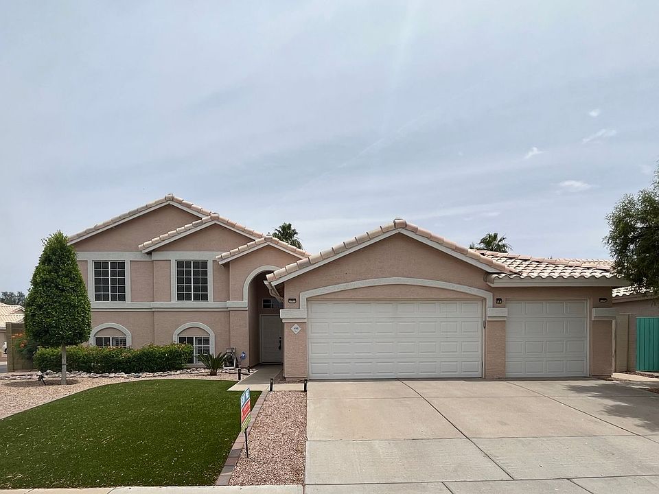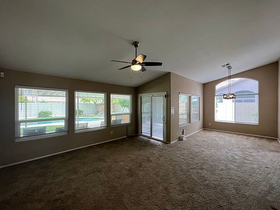 Corner Lot! Swimming Pool! Pool Service Included! Extended 2 Car Garage! Desert Landscaped Front Yard w/ Synthetic Grass and Trees! Desert Landscaped Back Yard w/ Synthetic Grass and Paver Patio! Split Floor Plan! Ceiling Fans! Window Blinds! Vaulted Ceiling! Carpet in Bedrooms and Living Areas! Stainless Steel Appliances! Granite Counters! Pantry! Kitchen Peninsula with Breakfast Bar! Recesssed Lighting in Kitchen! 2 Master Bedroom Suites! 1st Master Bathroom Dual Sinks! 1st Master Bathroom w/ Garden Tub and Separate Shower! Laundry Room w/ Storage Cabinets! Extended Covered Back Patio w/ Ceiling Fans! Outdoor Shower! Outdoor BBQ Kitchen Area w/ Refrigerator! Management Fee 3% $200 Lease Fee