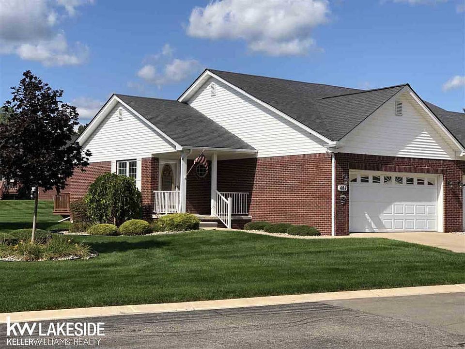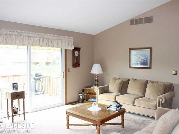 Adorable two bedroom condo with many updates! Features oak kitchen with granite countertops and stainless steel appliances included, snack bar seating, double closet pantry; breakfast nook, great room with vaulted ceiling, gas fireplace and doorwall to deck; master bedroom with private bath offering ceramic floor, tub with ceramic surround, granite counter; family bath with ceramic floor & granite; first floor laundry; full finished basement with 3rd bedroom and 3rd full bath, rec room, recessed lighting, tons of storage. Covered front porch plus a deck offer great places to relax with friends and family or a good book! Two car drywalled garage with overhead door opener.