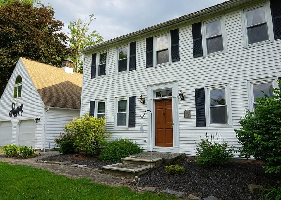 Unique opportunity to live on 9+ acres priced $60,000 below appraised value! Equestrians will love the 5-stall horse barn w/ two add. outdoor stalls, heated feed room, tack shed, paddocks and 7,000 sq. foot arena. The home features a gourmet kitchen boasting a built-in banquette, hand-hewn wood beams and wide plank floor, double wall ovens and ample storage. A sun-filled foyer leads to a bonus room above the 2-car garage. Year-round entertaining; an expansive rear deck overlooking the beautifully landscaped pool area, in-home theater w/ bar and generously-sized living room. Wood-burning stove and brand new (2019) boiler for cozy winter nights. 2nd Floor: 2 bed, 1 bath & a sprawling Master Suite: private en suite w/ soaking tub & separate shower, cedar walk-in closet & private balcony w/ stunning views of the grounds. Summer living at it's best with the heated in-ground pool, koi pond, fire pit, landscape lighting, gazebos, tennis court & more!