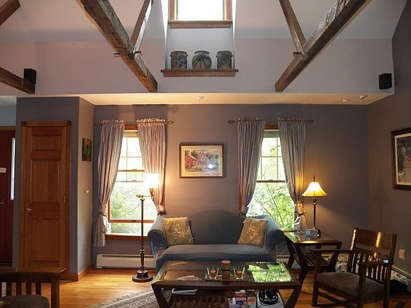 Step into your own piece of heaven in this peaceful setting. Sitting on the HUGE 50x14 deck you have complete privacy, bordered by historic stone walls, mature trees and wide open spaces. This 1996 cape has about 2300 square feet of clean, spacious living space. The formal living room with vaulted ceiling boasts beautiful historic beams and a hand carved fireplace. The dining room is adjacent to the kitchen and walks out to the deck with awning. There are 4 bedrooms, 2 up and 2 down and a 24x24 great room! The full basement with wood stove walks out to the beautiful back yard. There is an attached 2 car garage, PLUS a detached 3 car and 1 car garages. Plenty of room for cars and all of your other toys! There is a barn which could be used for animals, but is currently a wood shop. The little red building close to the road was a historic "toll booth" on scenic Route 169 and has been restored for your personal use. it would make a great studio with wood stove. There is alot to see and you won't want to leave this comfortable compound.