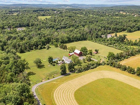 Discover your unique Bucks County lifestyle at Atherley Farm, epitomizing 19th-century farmhouse charm. Located on 10.62 private acres, this property blends historic charm and modern comforts, just 90 min from NYC and Philadelphia. Traverse the long gravel drive to verdant lawns, flowering trees, and professional landscaping. Built c.1820 with addition in 1995 and renovations from 2017-2024, this 4,541 sf home accommodates multi-generational living. The light-filled interior exudes warmth with Dutch doors, pine floors, FPs, stone walls, beams, and deep-sill windows. Completely updated throughout. The main floor features a library and living room with fireplaces. The spacious family room with dining area, wet bar, and wood stove is the heart of the home. Custom windows frame magnificent vistas, and a slider opens to the bluestone patio and Aqua Bello pool. The kitchen, updated with quartz counters, a farmhouse sink, island, and pine cabinetry, includes a FP. A custom door leads to Jerry Fritz-designed gardens and a bluestone terrace with a pool cabana for al fresco dining. Upstairs, find three BRs, sitting room, two updated baths, and the main BR with a vaulted ceiling, walk-in closet, and updated en suite. The attic and basement add to the finished SF. The bank barn features seven stalls, a hay loft, heated tack house, equipment shed, and eased trails leading to Bucks County Horse Park. Energy efficient HVAC, roof 2019, septic 2017. Close to the Lehigh Valley.