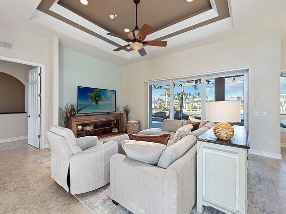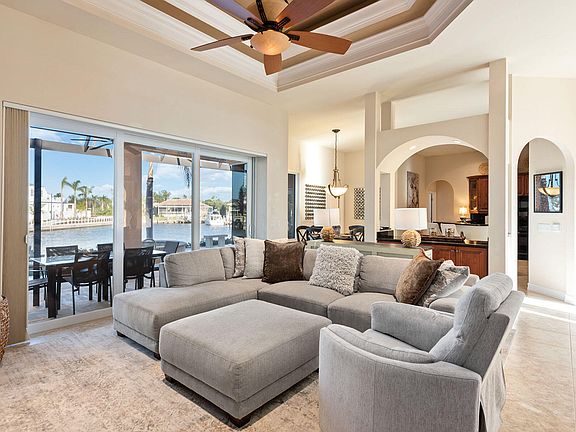 Take advantage of island living from this beautiful waterfront home within the heart of Marco Island, offering front-row seats to all of the incredible events, farmer's market and concerts at Veterans Community Park. Located on a quiet, private street on a key lot with 119' of indirect access frontage and expansive, tranquil waterway views. This 2005-built home offers an open, light and bright floor plan with three bedrooms, two-and-a-half baths, two dens and a great setup for entertaining. Beautiful, private setting/views from your spacious lanai that features a heated pool/spa and a nice docking system (13,000 lb. lift). Quick access to the Gulf of Mexico for all of your boating enjoyment, adventures, fishing and more. Important features/updates (additional items on feature sheet): 2020: new pool heater, sauna in study closet, seawall protection/French drain. 2018: new roof, screen enclosure, hot water heater and more. Hurricane protection (impact glass/shutters). Whole-home water filtration system, master bath steam shower and 20KW Generac generator. This home is in the center of it all, restaurants, entertainment, shopping and more. Choices are limited, don't miss out on this opportunity!