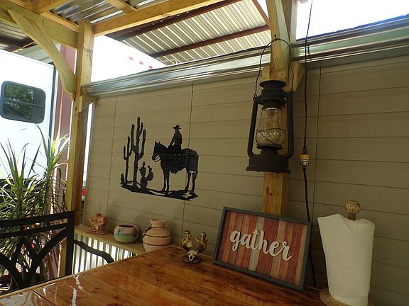 Fantastic RV/Recreational Lots or Full Time Living which includes a beautifully remodeled RV(pilgrim legend) Nicely Landscaped and fully fenced with electric gate entry. Nicely done Outdoor Bar & Entertainment area with wine cooler under huge shade trees. Cover is a large 45x50 steel frame for top of the RV & vehicle protection from the elements. Property is over half an acre with lots of space to spread out. All utilities onsite. Lots of storage for all your toys/tools. 2~ 50 amp hookups and one septic with two separate hookups. RV is a 2008 Pilgrim Legend with newly replaced floors, large fridge, Fireplace, King Size Bed and tons of charm(40ft) Lot is located with access from street to street if needed. One building has washer and dryer hookup and small kitchenette added. Lots of entertainments space for company and within walking distance to the Medina River for summertime enjoyment. This place is a gem and a serene place to hang the hammock and enjoy Hill Country Life.