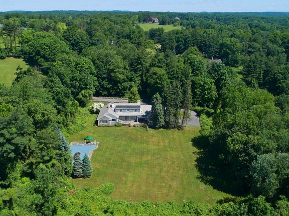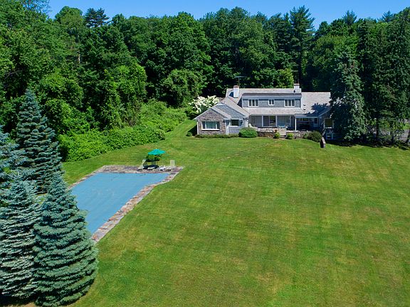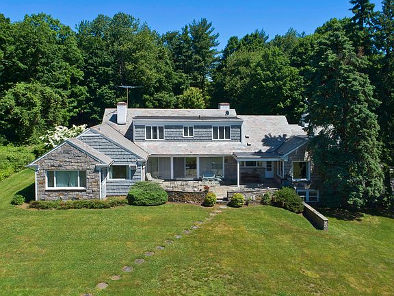Wonderful, high, exceptionally quiet and totally private property surrounded by lovely estates on Round Hill Road, often called the most scenic road in Greenwich. Center hall opens into living-room with fireplace and dinning room with walls of glass to panoramic southern views of gently sloping lawn and tree tops. Architect designed and built for these owners, 6 bedroom, 4.1 bath on 4.5 acres, with nice stone and shingle facade and slate roof; library with large bow window and fire place, first floor master suite with adjoining office, south facing kitchen with barbecue/fireplace adjoining sunny family room. With pool and tennis court this home is an ideal retreat. Offered furnished or unfurnished.