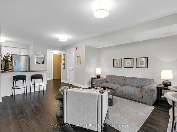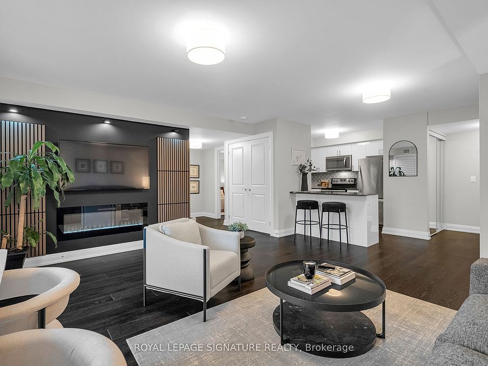 Welcome to 481 Rupert Avenue, Unit 204, a beautifully upgraded and rarely offered Red Oak corner model condo, with only six of its kind in the entire development. This bright and stylish 2-bedroom, 2 -bathroom residence offers a functional layout and thoughtful upgrades throughout, creating the perfect blend of comfort and modern design. The spacious open-concept living and dining area features a custom fireplace on a uniquely designed feature wall, creating an inviting focal point for entertaining or relaxing. The upgraded kitchen is equipped with white cabinetry, quartz countertops, pot drawers, upgraded faucets, and a modern backsplash, making it both beautiful and practical. Enjoy additional high-end touches including engineered hardwood flooring, California shutters, porcelain tile in the bathroom, upgraded light fixtures, and a high-quality glass tub enclosure. Both bedrooms and the foyer feature mirror closet doors, maximizing light and space. Step outside to your private, quiet balcony the perfect spot to enjoy your morning coffee or unwind after a long day. Parking and a locker are owned and included, adding extra convenience and value. Set in the heart of Stouffville, this home offers an unbeatable location just steps from shops, cafes, restaurants, parks, and transit, with a beautiful multi-sport park nearby. The area is known for its family-friendly community, excellent schools, and abundant recreational amenities including parks, playgrounds, trails, sports fields, and more Stouffville Neighbourhood Guide. This rare offering combines stylish upgrades, a premium layout, and an exceptional location making it the perfect place to call home.