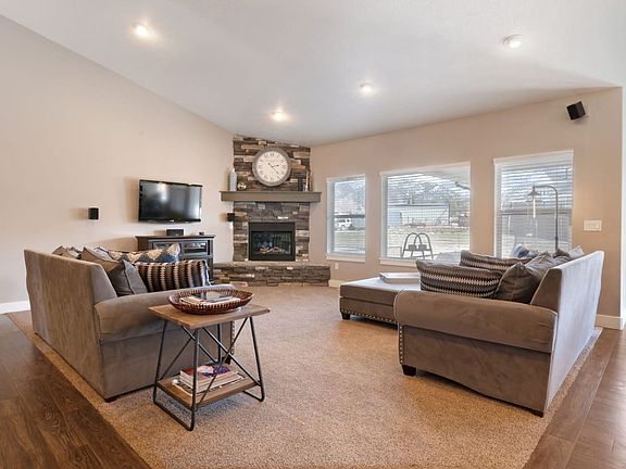 Beautifully finished open-plan home with tons of luxury touches. Spacious kitchen is built with highest quality cabinets, Bosch appliances, huge island with a second sink, and granite throughout. Giant insulated four-car garage, half of which is extra deep. Energy efficiency upgrades throughout (all LED lighting, 96% efficiency furnaces, 6" exterior walls with blown-in insulation) keep utility costs down. Cul-de-sac location within easy walking distance of elementary and middle schools.