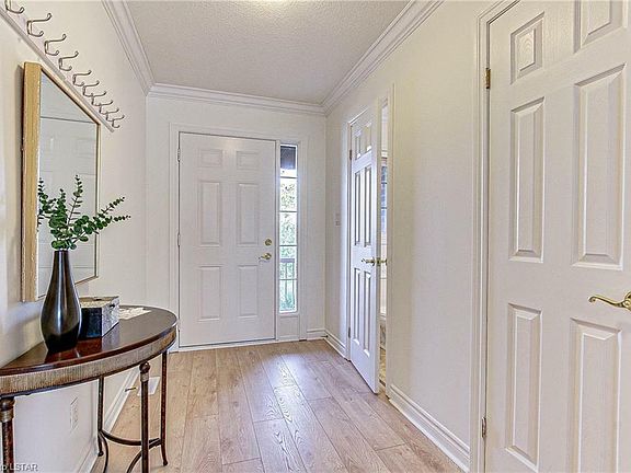 North London Uplands North neighborhood. Former Z Group Model home unit. Walking distance to Jack Chambers Public School. This walk-out unit has 3 bedrooms and 3.5 bathrooms, offering 1,813 sqft finished living space on 3 levels with Walkout basement. Freshly painted throughout. Newly installed warm hardwood flooring in foyer and living/dining area. Oak mission style kitchen cabinetry with valance lighting. Refrigerator(2019),Stove(2019), Dishwasher(2023). South facing bright eating area with sliding doors leading to a raised 120 sqft wood deck. Tons of natural light during the day. 3 double ceiling speakers on all 3 levels. Second level includes ample master with walk in closet and ensuite, 2 generous bedrooms and laundry facility. Finished lower level family room with walkout and another 3 piece bath. This is the one you have been waiting for.