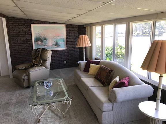 JUST LISTED FURNISHED at $28,888 & get a $5,000 Welcome Home Allowance if closed by December 31st. This home features: 1. Owner-Financing and rent-to-own available - 55+ only 2. A beautiful view of Sunset Lake with light & bright views of the fountain 3. A screened rear lanai to watch the view of the lake and pool and enjoy your sunsets and sunny days and feel the Tropical Breeze 4. Hardwood floors in the kitchen, dining and master 5. New fresh paint throughout 6. Newer acrylic sliders in the enclosed lanai 7. Both baths have walk-in showers 8. Furnished as shown 9. New Air-Conditioner with a transferable warranty and electrical box 10. Move-In ready 11. Golf cart included 12. Close to the new Northside fitness center 13. Next door to Sunset Pool and just 2 blocks from Ellenton Pool and Hall 14. Near Harmony Pool and Hall ACT FAST & CALL TODAY!! Don't forget to ask about the FINANCING available on this home. Colony Cove is an age qualified (55+) five-star resort community of manufactured / mobile homes. The "Cove" boasts 5 clubhouses, 5 heated pools, a riverfront pavilion and private fishing pier, a private marina, a fenced dog park (very pet friendly), tennis, shuffleboard, new pickleball courts, 2 new fitness rooms, 24 hour patrol, clubs for every interest, and much more. There are daily planned activities throughout the park. Bottom line, if you get bored here, it's your own fault!! The lot rent in Colony Cove is based on the homes' location. While the monthly rent may not be the lowest around, it's by far the best value for the money. Not only does the monthly rent cover all of the amenities of the community listed above, it also covers almost all other monthly expenses such as; water, sewer, trash pickup, all property taxes, lawn maintenance. . .pretty much every monthly expense except electricity, cable and internet. The current lot rent on this home is estimated at $978.13 per month.