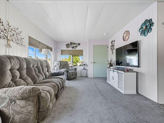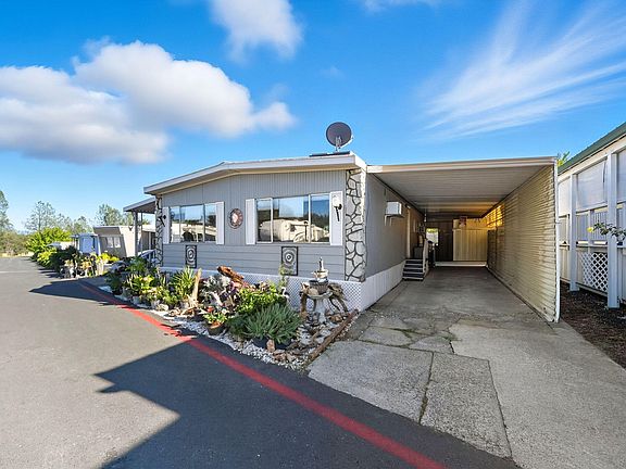 Beautiful and tastefully remodeled mobile home will not disappoint!! Be the first to show this lovely home to your 55+ Buyers. Home is light & bright with a nice open floor plan. The remodeled kitchen offers newer appliances, a tiled cook-top island, and NEW cabinets with loads of counter space. Both bathrooms have modern water-saver toilets. The hall bath is beautifully tiled. Inside laundry room and storage cabinets. Each room has something unique and special to offer; light fixtures, laminate flooring, carpeted rooms and much much more! Front covered patio provides wonderful privacy and multiple seating areas. Step down into the lush green backyard - it's a sanctuary of serenity! Enjoy and relax under the shaded areas. Covered Carport. At the end of the carport, a 9'x10' shop area. Panels of the skirting unlatch and open up, creating extra storage areas. 3-wall air conditioners beat the Redding heat. Roof is only 4 years old. This community has a nice Clubhouse and a fenced in-ground pool for your entertainment.