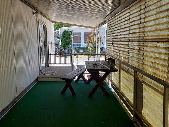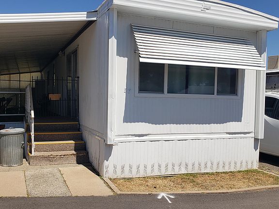So Much Potentiall; Needs TLC;. Home is livable and mostly needs clean up and some repairs. Has maintained HVAC & Evaporative cooling systems. On natural gas. Nice patio on side of mobile, chain linked fenced yard and shed. Room in carport for 2 vehicles. Newer tropical roof coating installed. Fix it up and it will be worth twice this asking price! 55+ park. Buyer(s) to qualify with park. Amenities: water, electric,50 amp service, pool, laundry & showers. Space rent is 493., with water, electric,, P.G.E,. & sewer is approx.$650.00 to $700.00 monthly.