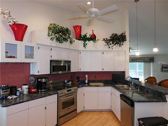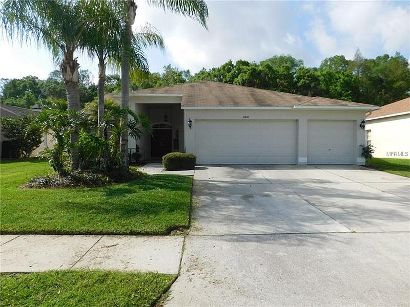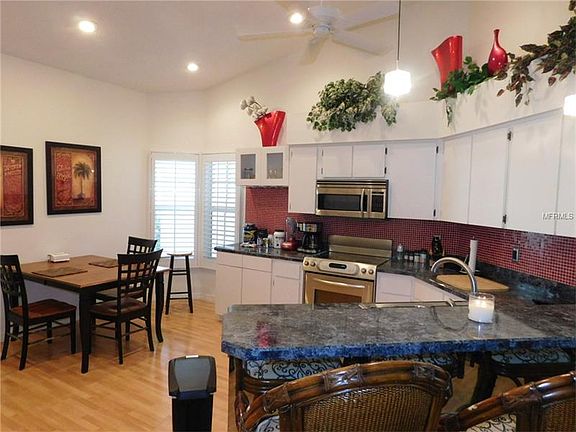 CONSERVATION LOT! Prime Eastlake Woodlands Pool/ Spa home. Great Room plan with vaulted ceilings. Spacious kitchen has an eating area with a built in desk and breakfast bar. Triple Split Plan with a very large master suite and a master bath with dual sinks, corian counter vanity, and a tub with separate shower. There is a space for formal dining. 4 Bedrooms, 2.5 Baths. The backyard is perfect for entertaining with a pool, spa, and a screened enclosure that includes a beautiful dry bar with TV. -Light & Bright. Very Open floor plan. All appliances stay. The 3 inside Bar stools stay. The 4 Outside Bar Stools stay. The TV in the great room stays. This one has it ALL!! Seller may put new roof on with acceptable offer. Seller has Loma letter from F.E.M.A. No flood insurance required. Shops, dining, entertainment, parks all nearby! Situated in this lovely gated community ideal for walking, biking, and optional country club membership available.