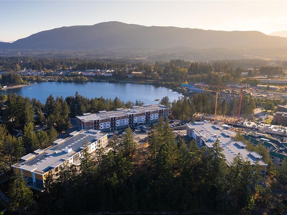 Located at the North End of Long Lake just steps to every amenity, Lakeview Terrace features 3 modern buildings, a standalone fitness/activity center & EV charging stations at the surface parking stalls & in the underground parkade. This energy-efficient, environmentally sustainable building stands alone in our marketplace. With a massive investment in solar energy & green building initiatives, these carbon-neutral homes provide cleaner air & better living. Solar panels on all 3 buildings help to keep the strata fees reasonable. Unit 308 is a desirable top floor unit with a beautiful treed & natural rock setting. Spread over 910 square feet, this 2 bdrm/2 bath home enjoys an inviting layout. Quality finishes include luxury vinyl floors, quartz counters throughout. The laundry room includes an abundance of storage & all the controls for the modern efficiencies found in this home. Rentals are unrestricted, 2 dogs or 2 cats are permitted of any size and there is no age restriction.