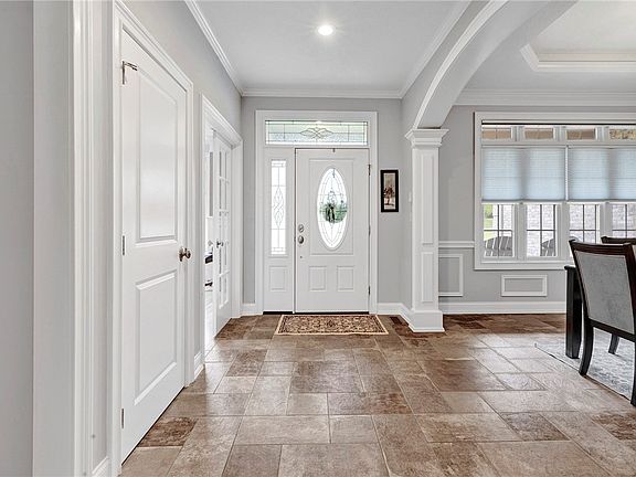 Nothing but perfection! Spacious entrance-to the right is an office anyone would love. A half bath conveniently located just off the office. Head to the master bedroom with his/her walkin closets. The master bath features a tiled shower w/ separate tub. Then to the spectacular dining room, complete w/ tray ceilings w/ lights, ornamental wall molding & arch entryway on 2 walls. Go straight into the living room, with beautiful views of the rear deck and your own quiet wooded yard. Don't miss the kitchen, where you will find custom made Hollowcreek Cabinetry, complimented by granite counters & tile backsplash. Large penisula for dining or meal prep. Just off the kitchen find 2 bedrooms and a full bath. One bedroom has a walk-in closet with auto lighting the other bedroom has 2 full closets. Dont forget the first floor laundry with steps to the upper level. Currently used as a 4th bedroom but could be bonus room your choice. Lower level giant family room, w/ wood burning stove.