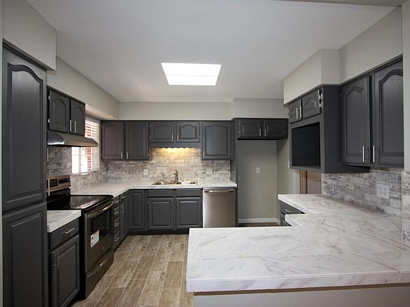 Wow! Amazing remodel in Central Tucson! Refinished cabinets, new counter tops, chic back splash, 2 tone interior paint, contemporary tile shower surrounds, Stainless steel appliances, new carpet, tile flooring and more! Large lot with covered patio, detached garage and shed/storage. Solid brick home with attached 1 car garage too. A must see!!