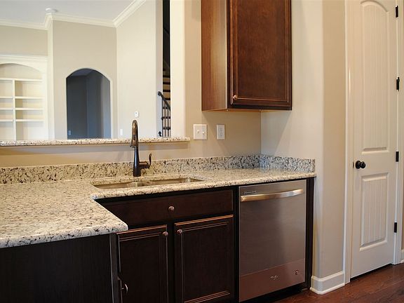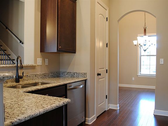 Birmingham floorplan in Stonecrest features an open concept living space with hardwood floors & vaulted ceiling. The kitchen features custom cabinets, granite counters & stainless appliances. The large snack bar opens the kitchen to the breakfast area & great room. Master Suite is down with vaulted ceiling, walk through shower, double sinks & Whirlpool. Bedroom and bathroom 2 are down with remaining up. Large 4th bedroom could be used as rec room and covered patio offers extra living space.