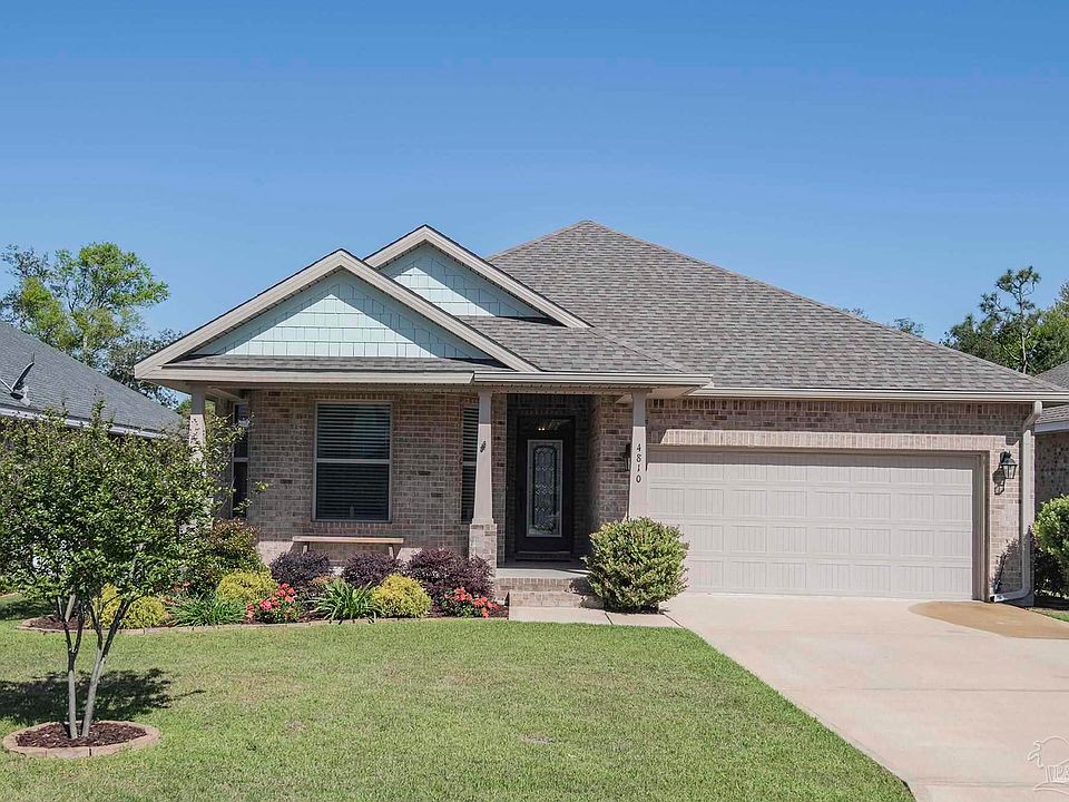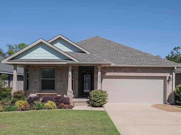 This is the turnkey house you have been looking for! 4810 Fish Hawk Ct is located just moments from the Perdido Kids Park and the rear gate to Pensacola NAS, in the gated community of Sunrise. This home offers an open floor plan with high ceilings and a designated office/flex space. The kitchen comes equipped with significant cabinet storage, a breakfast bar, and a large island, granite countertops, pantry, and stainless-steel appliances, including a gas stove. The property offers a split floor plan, the primary suite has plenty of room for your furniture, the bathroom has a double vanity with granite, with an oversized garden tub, and a separate walk-in shower. Off the great room is the 12x21 screened patio area, where you can enjoy views of the beautiful landscaping. The seller has already installed the extras that you’re looking for, including a well for the sprinkler system, privacy fence, whole house gas generator and a termite bond.