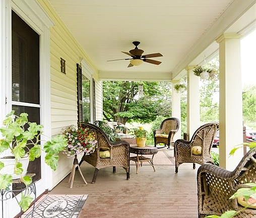 Stunning, lovingly cared for home with gorgeous front porch and metal roof. Beautiful park-like yard, huge heated garage. Above ground pool with wrap around deck. Four spacious bedrooms with updated kitchen and first floor laundry. Pellet stove in warm and inviting dining room.