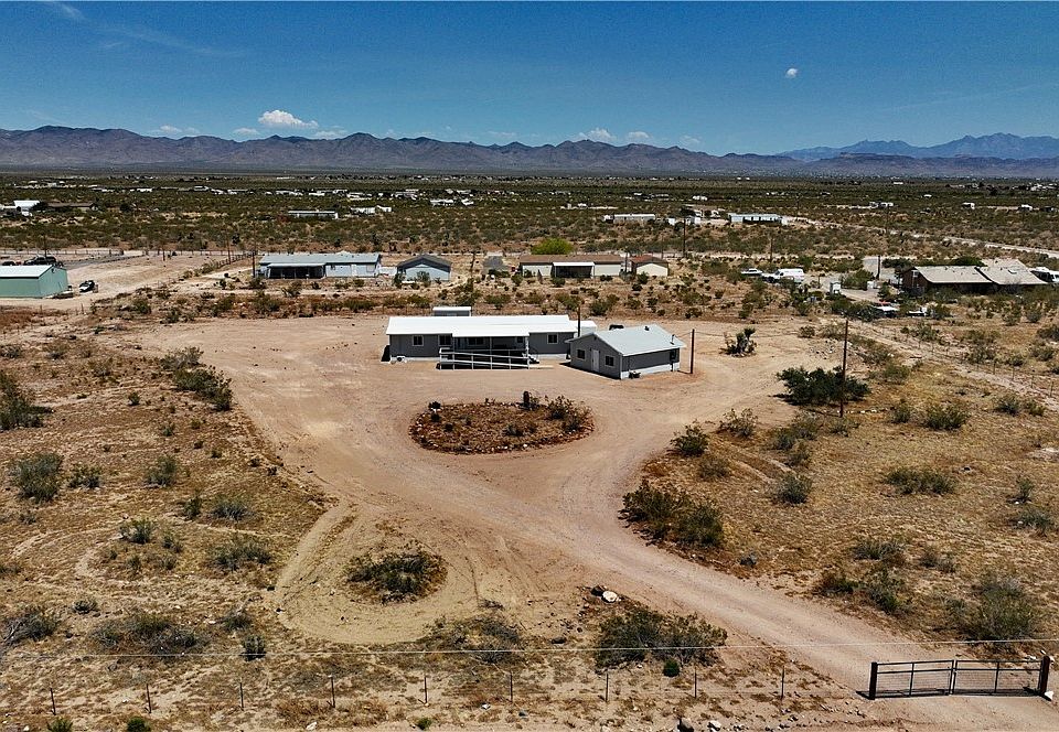 Two Homes on 2.35 Acres ~ Main house has three bedrooms, two bathrooms with 1,560 sf and guest house has one bedroom, one bathroom with 576 sf, for a total of 2,136 square foot of living space. Main home started as 14 X 60 singlewide manufactured home, it was gutted and rebuilt with a 12 X 60 add on. Both homes have been nicely remodeled by the seller, the main home was built with mobility in mind. The huge covered deck has a nice ramp that comes up to the front door, three foot wide doors throughout, tall toilets, grab bars, and the main bathroom has a roll in shower. The nice big living room opens up to the dining area and kitchen. Kitchen has all new gray cabinets and a long island, butcher block counter tops, stylish backsplash and Frigidaire stainless 5 burner electric range, microwave, dishwasher and refrigerator. Main bedroom has dual closets, dual vanities, linen closet, easy access toilet, beautifully tiled wet room with roll in shower and big soaking tub. Hall bathroom has a linen closet, tall toilet and tub shower combo with grab bars. Home is all electric with four new mini splits for heat and air and a large laundry/mud room with a door from front deck. Open split floor plan with new vinyl plank flooring throughout, new lighting, doors, windows, roof, outside siding, etc. The guest house has a good sized living room, galley kitchen, dining area, one bedroom and one bathroom with a walk in shower. The pump house has a new 1,200 gallon water tank & pump, and the new water heater serves both homes. The storage shed is 8 X 14 with a concrete floor. This fully fenced 2.35 acre parcel gives you lots of room for toys, horses or whatever makes you happy. $245,000.00 ~ Cash Only ~ 4810 N. Ehrenberg Rd. Golden Valley, AZ.
