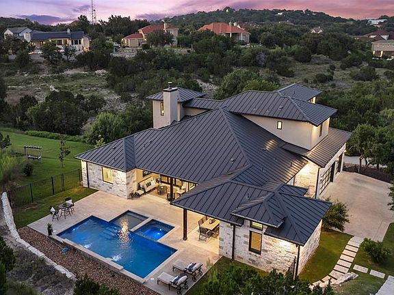 This gorgeous secluded gated home, has a very unique floor plan, providing 2 bedrooms and one guest suite on the main floor and 2 additional on the second floor, each with a full bath! Two living areas and a home office. This gated estate was just completed in 2019. The 1.54 acre homesite, is nestled among beautiful trees and contiguous green space among other acreage estate homes. The home was constructed with elevations providing panoramic views and seasonal breezes! Gorgeous pool, verandah and fire pit, provides a great relaxing lifestyle and entertaining environment. The 3 car garage, has high ceilings accommodating lifts to be added for the car collector. The Vista Verde acreage community, is located in an area within the Lake Travis Schools with easy access to area Lake Marinas, Golf & Tennis Clubs, Health & Fitness Facilities, Dining, Live Music, Shopping and day trips to the Texas Hill Country and Wineries! Low Tax Rate and HOA Fees!