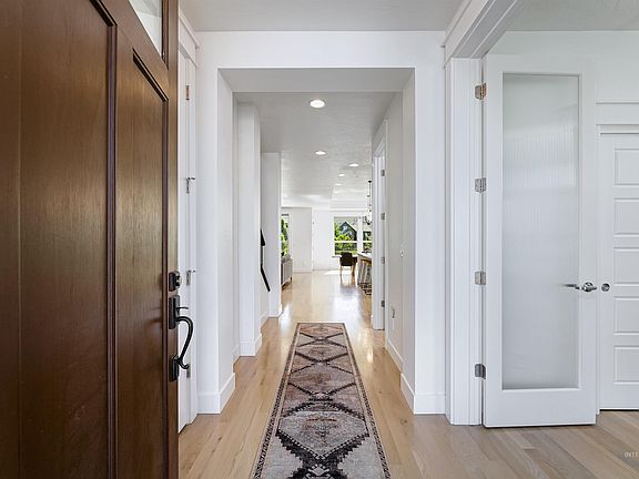 Nestled in the prestigious River Heights neighborhood of NE Boise, this exquisite home offers an unparalleled living experience, backing onto a serene common area. The main floor boasts hardwood floors throughout entry, office, kitchen, dining & living room. The expansive windows, thoughtfully positioned, capture breathtaking foothill views, & bathe the interior in abundant natural light. Spacious kitchen featuring quartz countertops, marble backsplash & a spacious walk-in butler's pantry, perfect for storage and preparation. Main level master suite w/private laundry room. Upstairs features 4 spacious bedrooms & oversized bonus room w/ incredible views of foothills. Convenient second laundry room upstairs equipped with W/D. New never lived in lux carpet throughout! Biking, Hiking, Fishing are all right out your back door w/Boise Greenbelt, River, Trails just steps away. Great access to interstate, Micron, Bown Crossing and so much more.