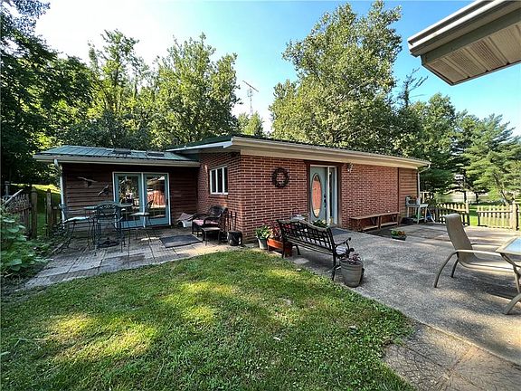 Lake Living! This contemporary-style, brick home sits on 8 acres with access to the 30-acre lake with dock. Outdoor activities are endless with fishing, hunting, a deer food plot and deer stands. The main level features a sunroom with skylights, french doors & gas stove. The step-saver kitchen makes cooking a breeze which opens to the large living room. The upper level features a master suite featuring a bathroom, walk-in closet, fireplace plus a private balcony overlooking the lake and the 2nd bedroom. The LL has the laundry room, full bathroom & bedroom. The bsmnt rec room is awesome! Some updates are: newer roof, AC windows, water filtration & pump, garage roof. Plus, there is a 24x40 heated/elec barn with concrete floor & 2 car gar.