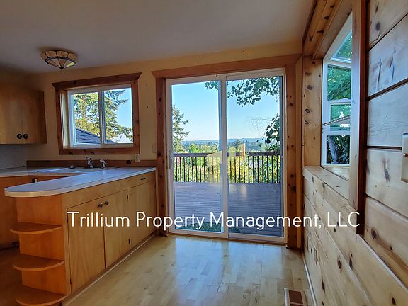 Lovely home with orchard, territorial views, solar panels, deck, laundry, garage, large yard (not fully fenced). This home affords privacy, views, and an extensive orchard including multiple varieties of pears, plums, apples, berries, and more. Quiet, sweet, neighborhood. Some newer paint, hardwood floors, cozy wood stove, laundry, deck, a large unfinished basement. Enjoy the outdoors all year from the deck in the private yard. Pets are welcome, however the yard is unfenced. Gas heat and AC, newer high-efficiency windows, woodstove, and solar panels help keep the bills down. Some landscape service and garbage included, tenants to pay all other utilities. Please schedule online, remote viewings available via Zoom, please make a note of it in the appointment scheduling app. The Open Application Period will begin 72 hours after this listing posts at 2:30 pm on 9/24/2020. Applications and complete screening criteria are emailed automatically after the appointment time, no applications will be accepted prior to an applicants' or their proxy's viewing. Applications are processed in the order received, and per City of Portland regulations. All adult occupants will need to be screened, and to pay for screening, including background and/or financial depending on applicant financial consideration status. Screening fees are either $35 or $45 per adult, depending on whether an applicant will be considered financially on the application. This unit is not an accessible type A unit. The complete notices, application and screening criteria are available from trilliumpdx.com Briefly, they are: 2 x the rent in monthly income or 2x the annual rent in liquid funds, a credit score is not required, but if any credit score is available, it must be at least 660, 3 years of positive, current, complete, rental references or mortgage history, no negatives on a credit report, reasonable verification of identity, max 20% debt to income ratio, cosigners not accepted, full first, full last, tenant liability insurance and 1/2 month's rent in security to move in.