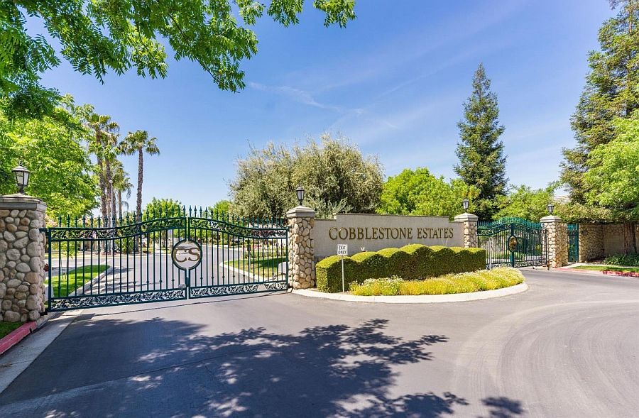 Welcome to this estate-quality custom home in Cobblestone Estates, Visalia's premier gated community. Beautifully updated home features 3,997 sqft of living space on a 1/3 acre lot. Oversize 3 car garage with newly epoxied floors. Court Yard Style Entry with 8' double entry doors. Desirable great room layout with kitchen facing the family room. Tile floors stretch from the entry through the formal dining room, kitchen, family room and hallway. Family room has a cozy fireplace with precast mantle, crown moldings and great natural light. The dual island gourmet kitchen offers professional grade appliances, custom cabinetry that provide enough storage for all of your culinary needs, and natural granite counter-tops with full granite backsplash. The Master Bedroom features French doors, 3 sided gas fireplace, jetted tub, & dual vanities with wall to wall mirrors. Delightful built-in rear patio with dual fans and 10' ceilings. Back yard is ready for your imagination. Truly a must see!