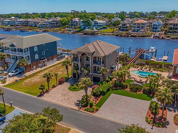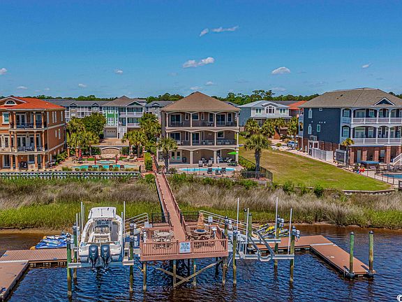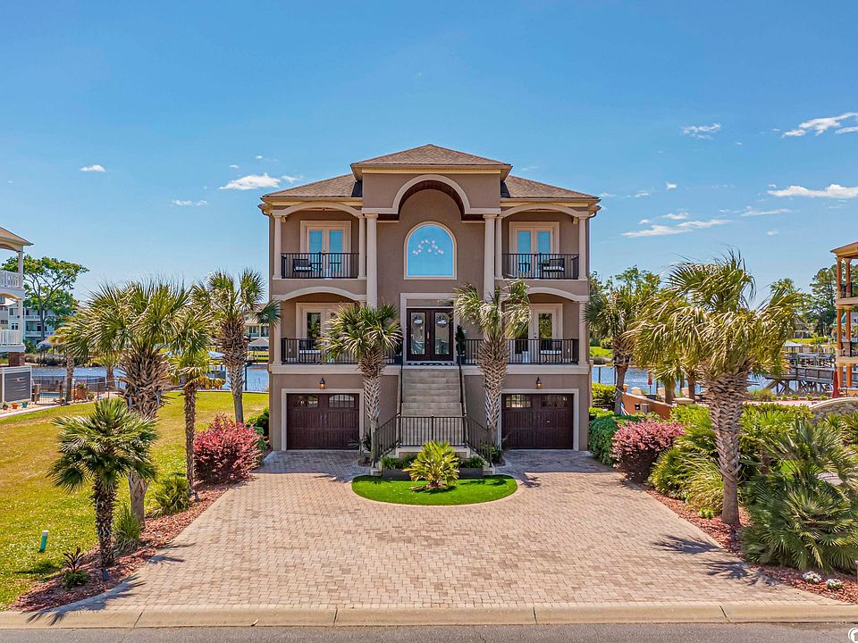 Summer is in full swing and now is the time to buy your dream home on the ICW. Breathtaking Waterway views from this gorgeous 4 BR, 3.5 bath home in the exclusive gated community of Paradise Island! The main level of this one-of-a-kind home includes the gourmet kitchen, formal dining room, grand foyer, media room, laundry room, living room, and porches on both levels overlooking the IC waterway. The spacious gourmet kitchen has high-end appliances, built in Refrigerator, Ice maker, Pantry, Granite counter tops. You can take the elevator or exquisite custom staircase upstairs to visit the 4 bedrooms that all have double-tray ceilings and all 4 bedrooms offer doors to exterior porches or covered balconies for amazing views! The home includes high ceilings, central vacuum system, intercom and stereo system throughout the home, with custom crown molding throughout. The master bedroom suite offers large walk-in closet, access to upper covered porch overlooking the ICW. The master bath includes both a jetted tub and separate shower. The 4th Bedroom is a perfect spot for a private office. The finished garage includes more space for entertaining, with plenty of storage space, a workshop area and an interior staircase to main level plus Elevator access to all 3 levels. The interior of this home is not to be outdone by the exterior entertaining space of the home. The front of the home has a welcoming front porch and the back of the home has a front row view of the intercoastal waterway. This home offers a large saltwater pool, grilling area, gas firepit, garage patio door entrance with full bath, 3 levels of beautiful porches with wood ceilings, paver drive and patio area. And if that is not enough, there is a shared pier with access to 2 floating docks (1 for your jet skis), a remote control boat lift with access steps and gate and a Hatteras Power Pedestal with DC outlets and water capabilities. Spend your afternoons in your pool, cruising the waterway or enjoying cocktails on your pier. If you are looking for an amazing waterway home, this home has it all!