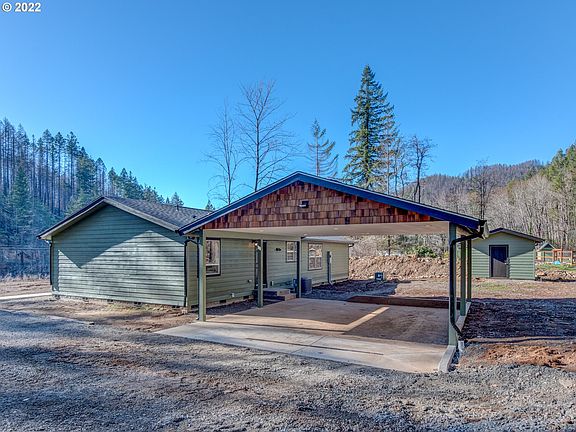 Stunning! A 2021 manufactured home across from the famous McKenzie River! Perfectly placed on a sunny, gently sloping acre with a private drive and carport. Additional room for RV parking. This 3 br./2ba home has many upgrades and custom features; walk-in closets for each bedroom, a kitchen an with island and walk-in pantry, a private master suite with soaking tub & walk-in shower. All stainless steel kitchen appliances and a separate pantry. Mudroom/laundry room. Garden shed/equipment room.