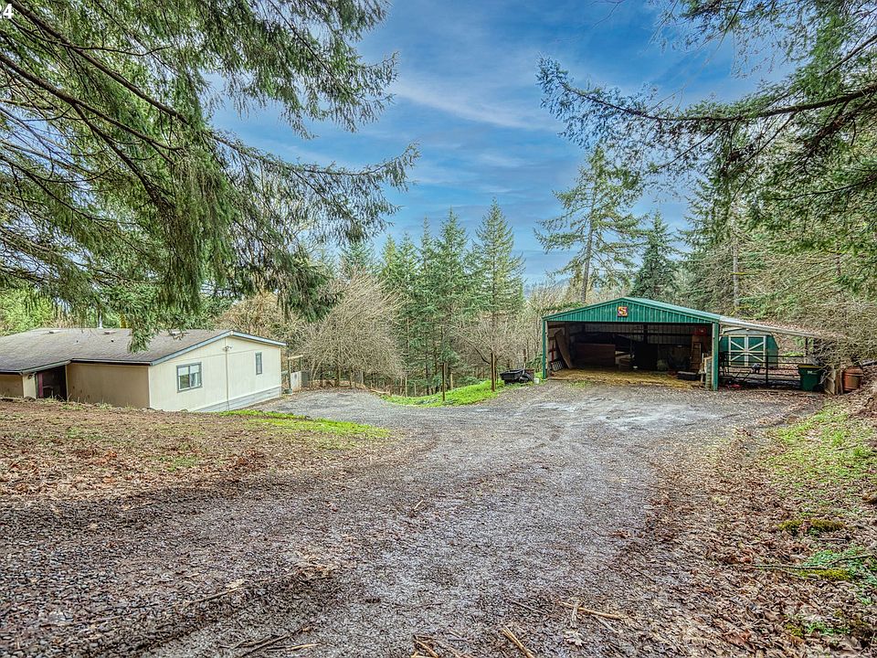 Welcome to your rural oasis, just a short 10-minute drive from the City of Forest Grove. Nestled on 10 acres, this property boasts the perfect blend of natural beauty and convenience. Planted 36 years ago, the merchantable timber adds not only aesthetic appeal but also a valuable asset to your investment. The property unfolds with several fenced pasture areas catering to your agricultural or equestrian dreams. A 24x24 pole barn, accompanied by attached lean-to's and a 12x12 matted stall, provides ample space for storage, shelter, or a hobby farm. The potential for breathtaking valley views or glimpses of Mt Hood further enhances the allure of this land. The cozy heart of this property is a 1080 square foot, 2-bedroom, 2-bathroom open-concept manufactured home. Offering comfort and simplicity, it provides a welcoming space to call home. Beyond the existing residence, envision the possibility of building your dream home, customizing this picturesque landscape to match your vision. Essential utilities ensure a seamless lifestyle. A higher producing well delivers a remarkable 14 gallons per minute, with water quality passing its most recent test in October 2022. The septic system was pumped in June 2022, promoting optimal functionality. Your access to the property is facilitated by a private road, maintained by homeowners at a minimal annual fee. This property invites you to embrace the rural lifestyle while staying within reach of city amenities. Whether you're drawn to the potential of cultivating the land, enjoying the serene surroundings, or envisioning your dream home against a backdrop of natural beauty, this 10-acre gem offers a unique canvas for your aspirations. Don't miss the chance to make this slice of paradise your own.